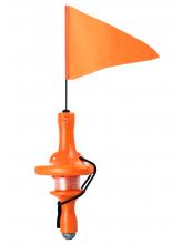 The Rob Allen Flash Float Line Winder is a new flasher float with a flag holder. Easy to use and bright orange for safety. |